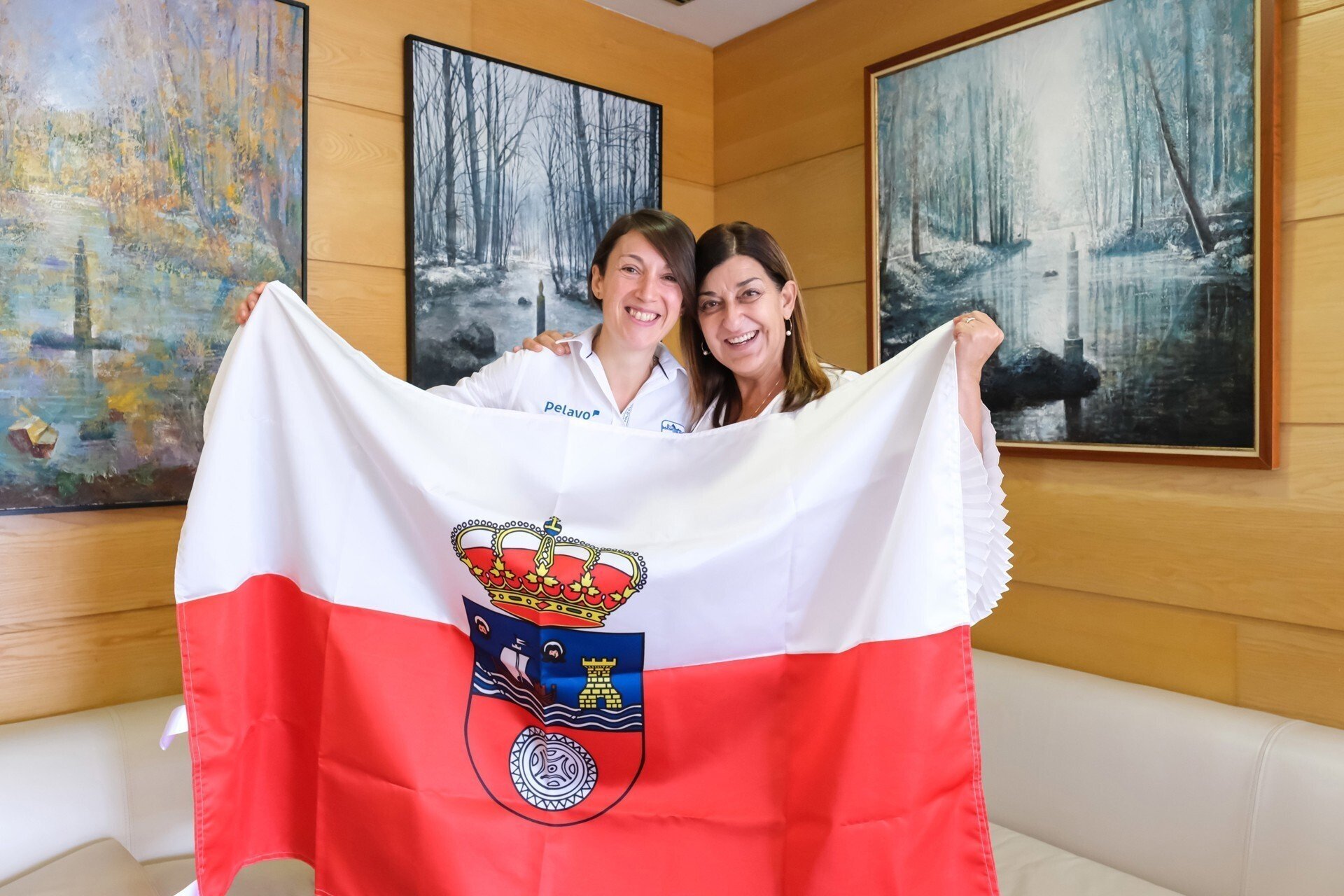 Sonia Saiz recibe la bandera de Cantabria que llevará a la Patagonia con el Reto Pelayo Vida