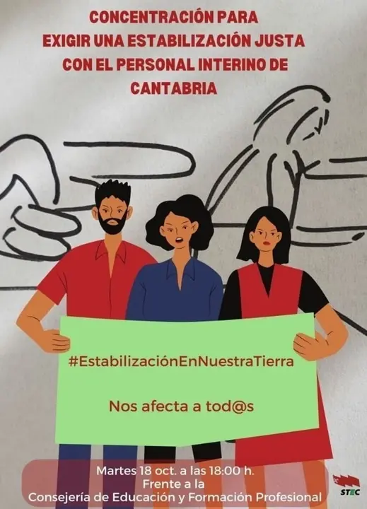 El sindicato ha asegurado que los gobiernos de otras comunidades están implementando "mecanismos de diversa índole" para proteger a sus docentes interinos, y precisamente para que la Consejería de Educación de Cantabria haga lo mismo, es por lo que ha convocado a todo el profesorado este martes con el lema '#EstabilizaciónEnNuestraTierra'.