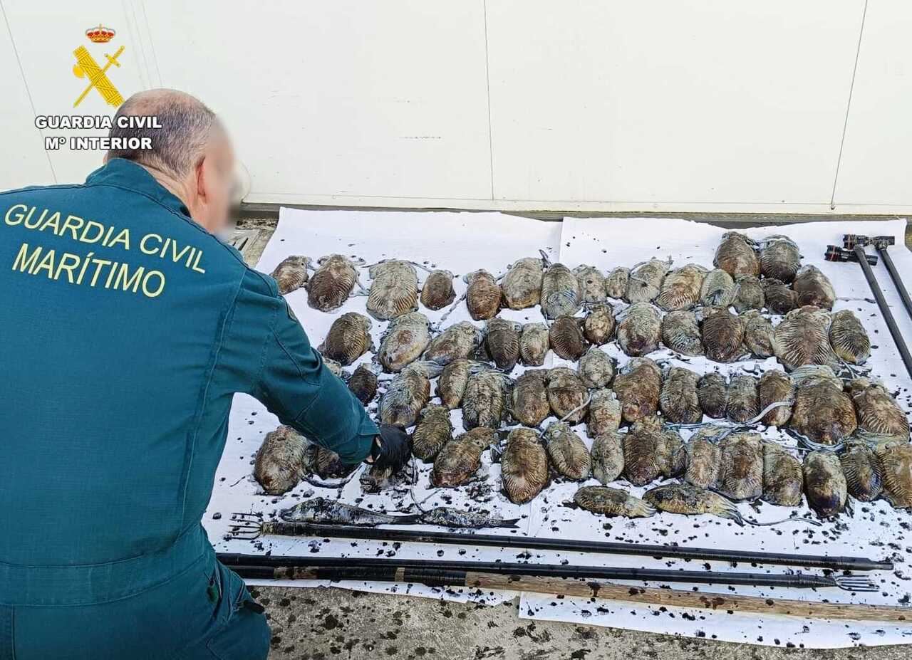 La Guardia Civil en Cantabria ha denunciado en dos fines de semana a siete personas por presunta pesca furtiva y ha intervenido los útiles utilizados y unos 95 kilos principalmente de cachón, aunque también había diferentes cantidades de salmonetes, dorada, cabracho, perla-herrera, rodaballo y jargo, que han sido entregados a centros benéficos.