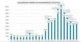 Esta cifra representa el 0,9 por ciento de todos los concursos declarados en España en estos 22 años. De estos, 344 se iniciaron entre 2008 y 2013, siendo 2013 el año que suma la cifra más elevada alcanzada en la comunidad, 94 procesos. Antes de 2008 nunca se habían superado los 11 procesos.