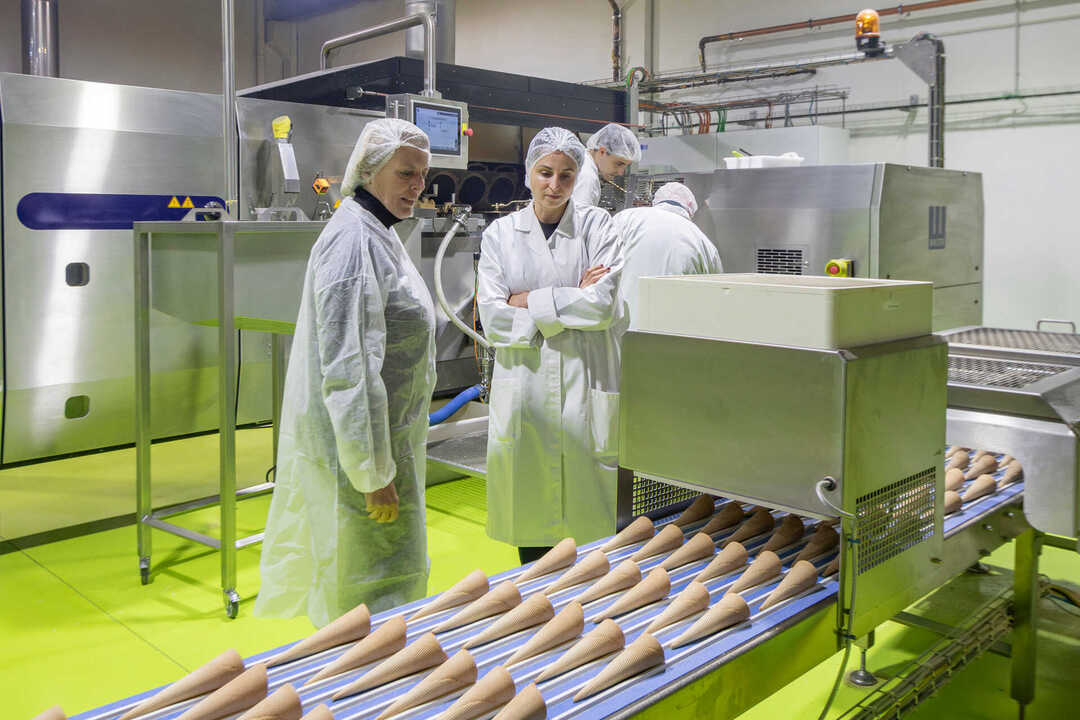 La consejera también ha hecho hincapié en la internacionalización de esta empresa agroalimentaria familiar de los Valles Pasiegos, que actualmente produce más de 15.000 conos de helado diarios a la hora.
