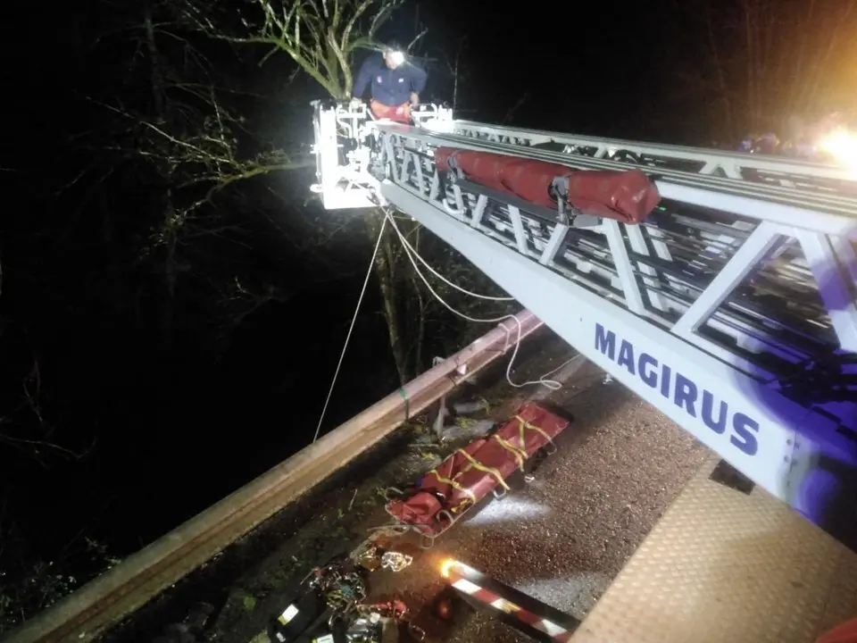 Al lugar acudió la Guardia Civil, efectivos de los Bomberos del 112, que rescataron a uno de los jóvenes que había caído por un terraplén al saltar la bionda, y del 061, además de miembros del servicio de mantenimiento de carreteras.