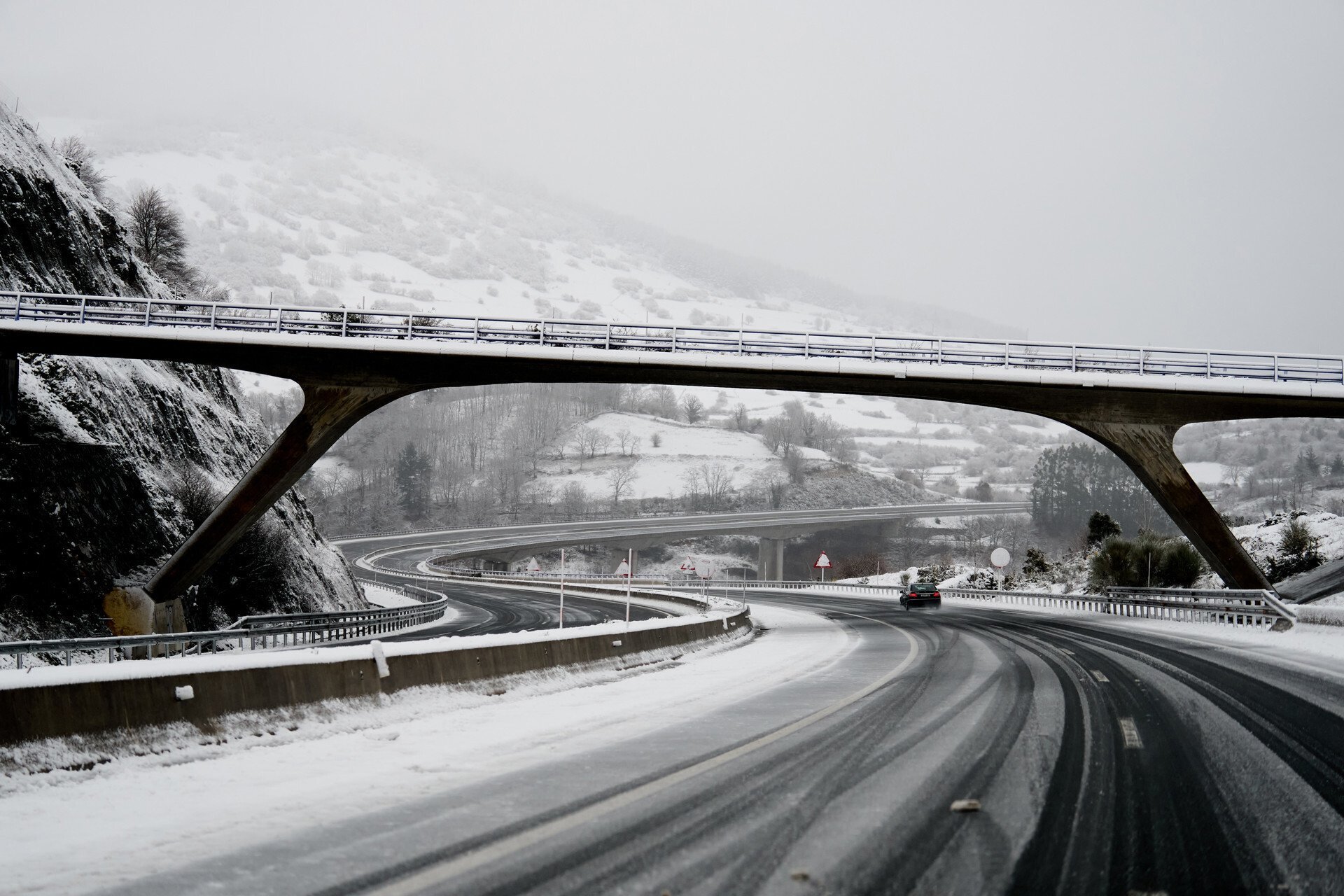 Cerrados cuatro puertos de montaña y cadenas en tramos de la N-621 y N-629 y en seis carreteras autonómicas