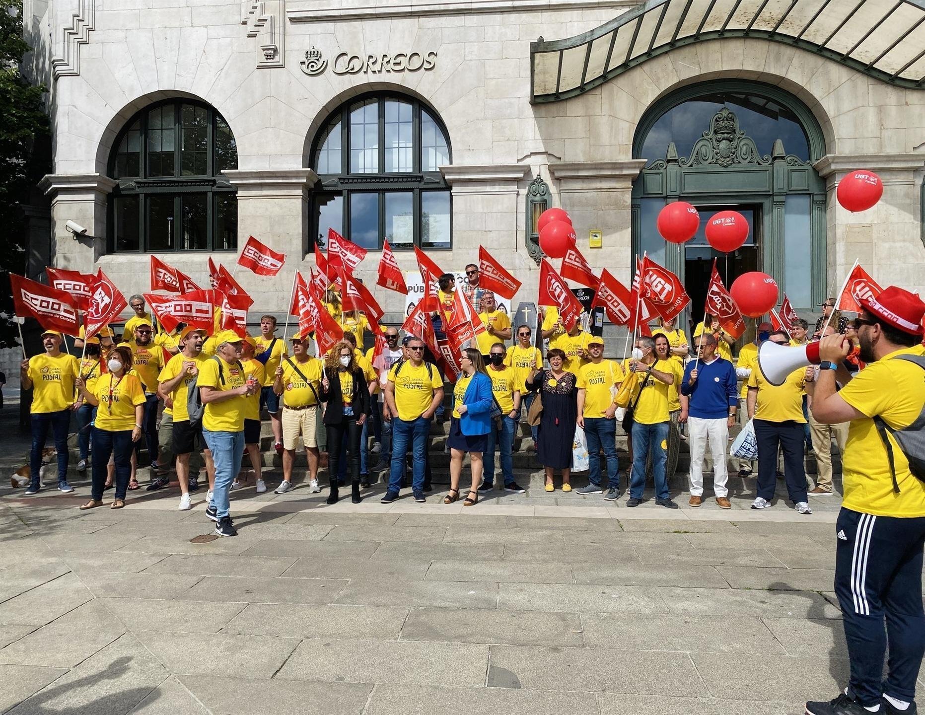 Los trabajadores de Correos en Cantabria se han concentrado este viernes frente a la oficina de la empresa postal pública en la Plaza Alfonso XIII de Santander contra el "desmantelamiento" de la entidad, coincidiendo con el tercer y último día de huelga general convocada por UGT y CCOO.