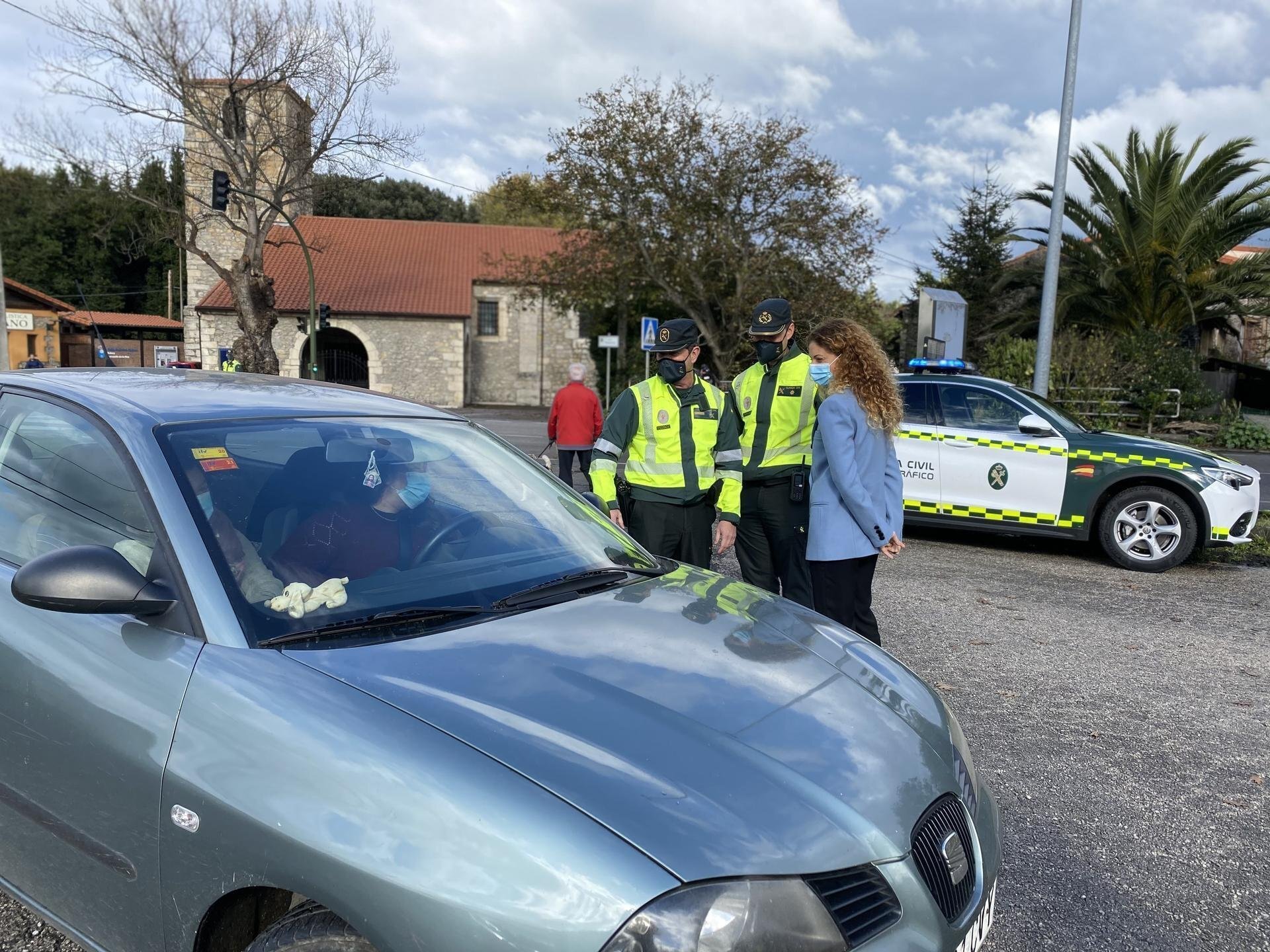 La delegada del Gobierno en Cantabria, Ainoa Quiñones, el jefe provincial de Tráfico, José Miguel Tolosa, y el comandante del Sector de Tráfico de la Guardia Civil, Rubén Flores, han visitado un control de la campaña realizado en Gajano y han explicado los detalles de la misma.