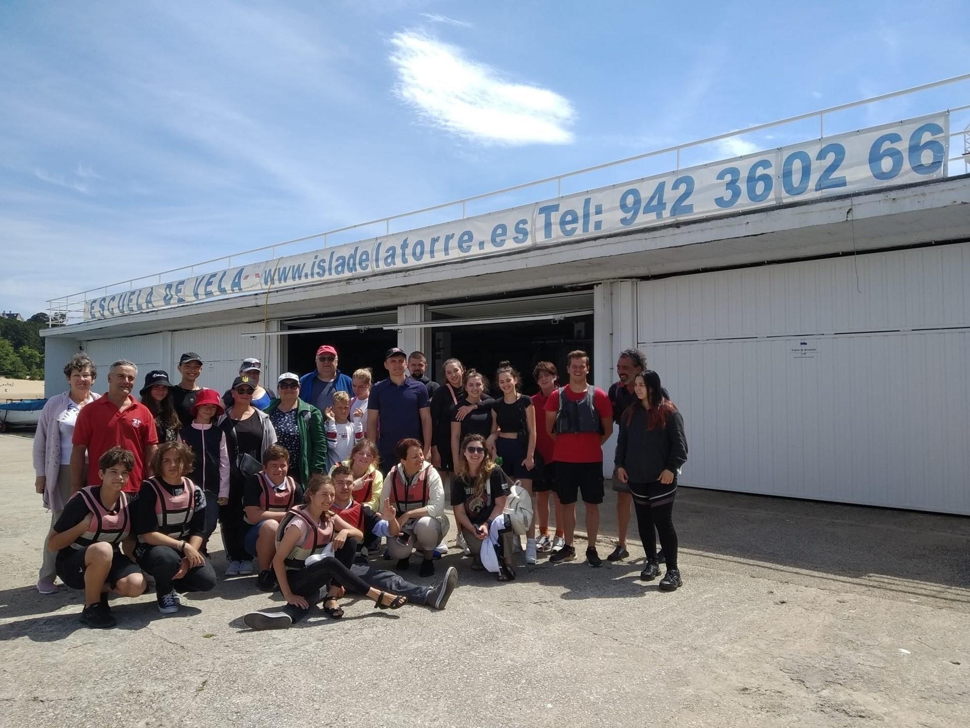 La Federación Cántabra de Vela ha invitado a una treintena de miembros de la Asociación de Ucranianos en Cantabria (Oberig) a un 'bautismo de mar' en las instalaciones de la Isla de la Torre de Santander.