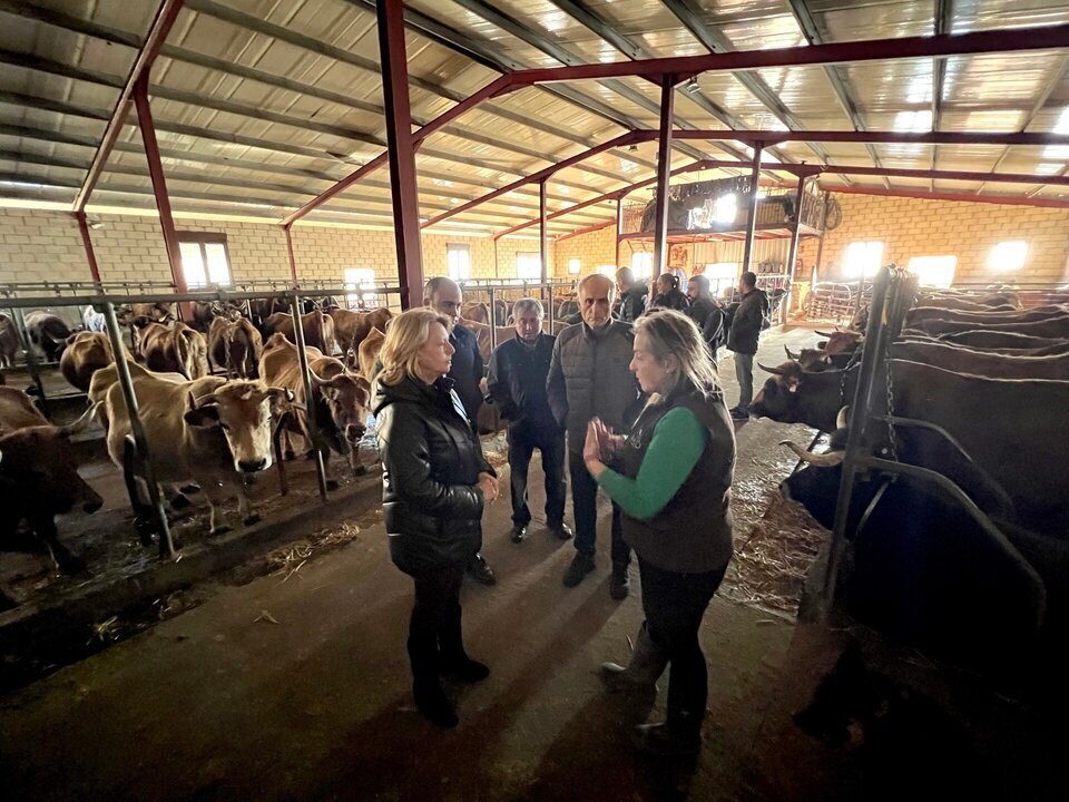 La consejera de Desarrollo Rural, Ganadería, Pesca y Alimentación, María Jesús Susinos, ha visitado la explotación, acompañada por su propietaria, Marta García, el alcalde de Soba, Julián Fuentecilla, y el gerente de Agrocantabria, Jacobo Alonso.