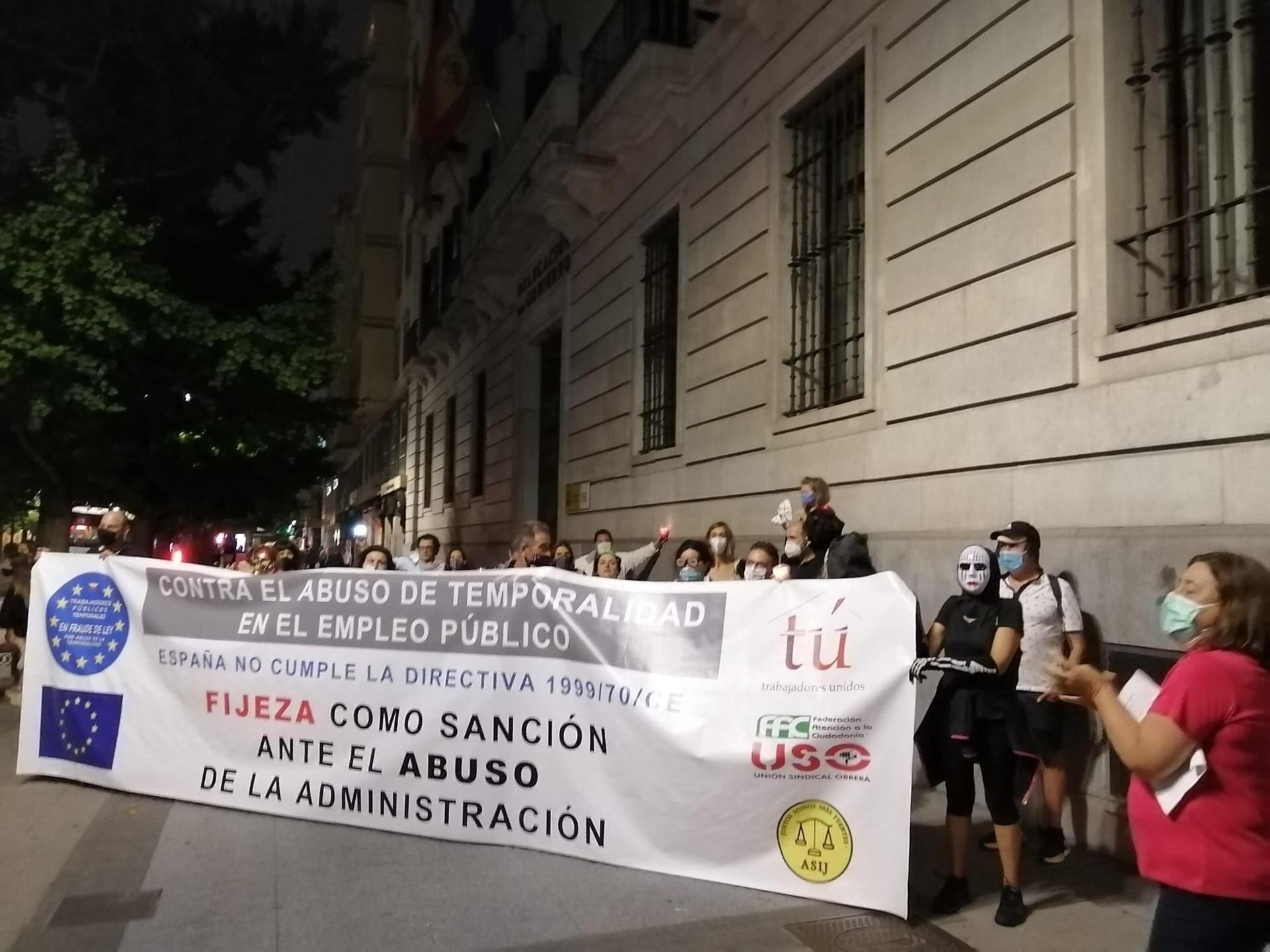 Los sindicatos USO y Trabajadores Unidos (TU) han vuelto a manifestarse este viernes en representación de los interinos, trabajadores de todos los sectores y todas las administraciones públicas "en abuso y fraude de ley".