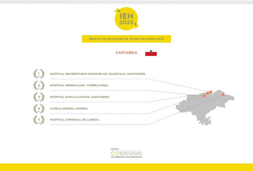 El Hospital Universitario Marqués de Valdecilla consolida este año su liderazgo como mejor centro sanitario de Cantabria, según el Índice de Excelencia Hospitalaria 2025 que elabora el Instituto Coordenadas de Gobernanza y Economía Aplicada (ICGEA).