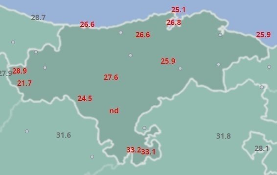 Mientras, varias zonas de la región han rozado los 30ºC, como Tama (Cillorigo de Liébana), que ha llegado a los 29,2ºC; Ramales de la Victoria, con 29ºC, o la zona de Fuente Dé, en Camaleño (28,9ºC), según datos de la Agencia Estatal de Meteorología (AEMET) consultados por Europa Press con datos actualizados hasta las 18.42 horas.
