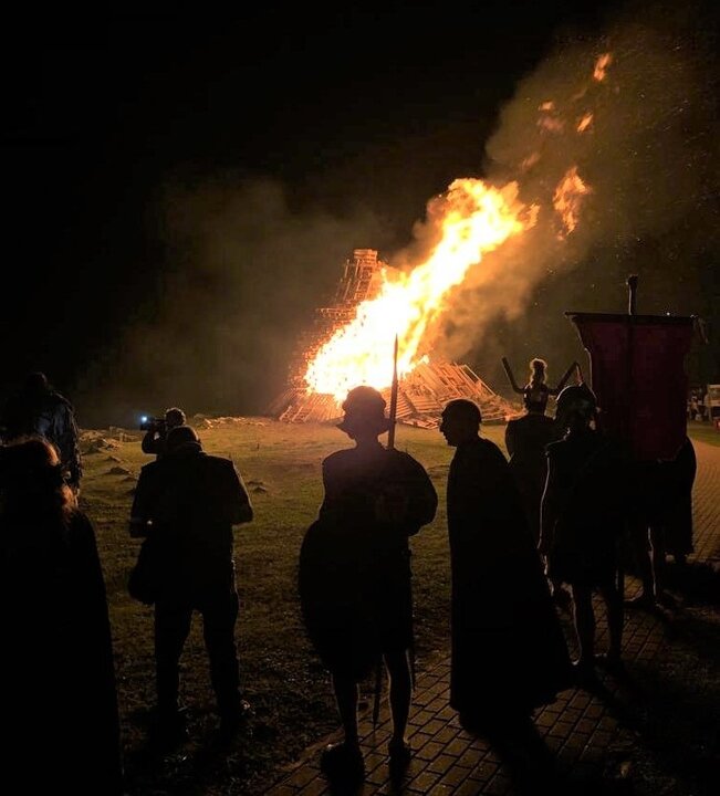 A las 21.30 horas llegará el turno de la música con una romería a cargo de Panorama City, que irá seguida del espectáculo audio-visual en la playa. A las 23.15 horas, tendrá lugar la teatralización 'Los vientos de la llama eterna', a cargo de Ulapé Teatro, que recreará los momentos previos.