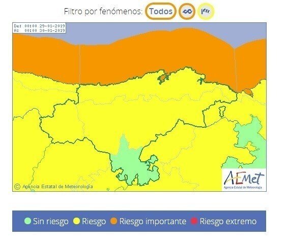 De manera previa y posterior a la activación del aviso naranja, Cantabria estará en nivel amarillo por el mismo fenómeno entre las 12.00 y las 15.00 horas del martes, y también desde las 15.00 horas del miércoles y hasta final del día. La previsión para estas franjas horarias es de viento de componente oeste fuerza 7, y mar combinada del noroeste de 4 a 5 metros.