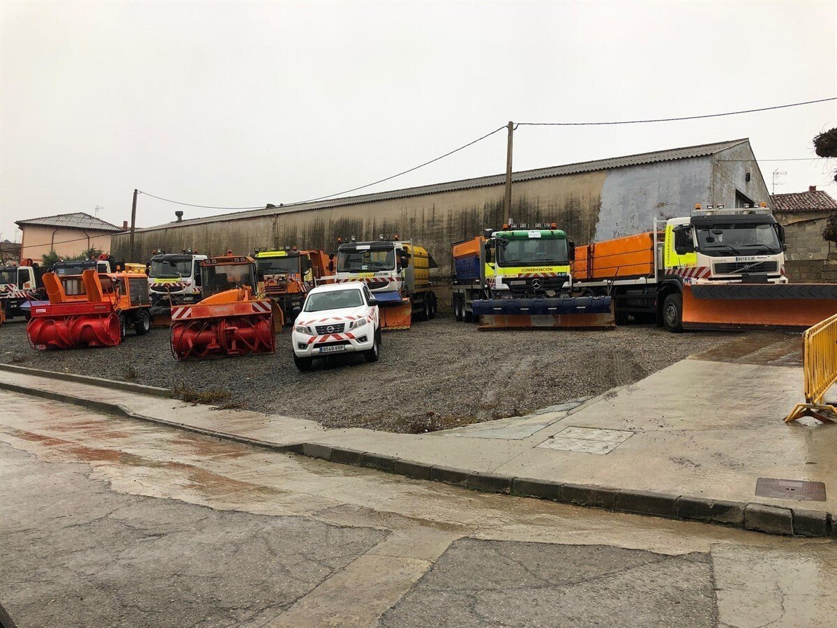 Además, se dispondrá de 13.100 toneladas de fundentes almacenados en depósitos y 3.000 toneladas en los 33 silos, además de 822.000 litros de salmuera en 16 depósitos para contrarrestar los efectos de los temporales en la A-67, A-8, S-10, S-20 y S-30. Este material también se empleará en las carreteras N-611, N-621, N-623, N-634, N-635 y N-636.