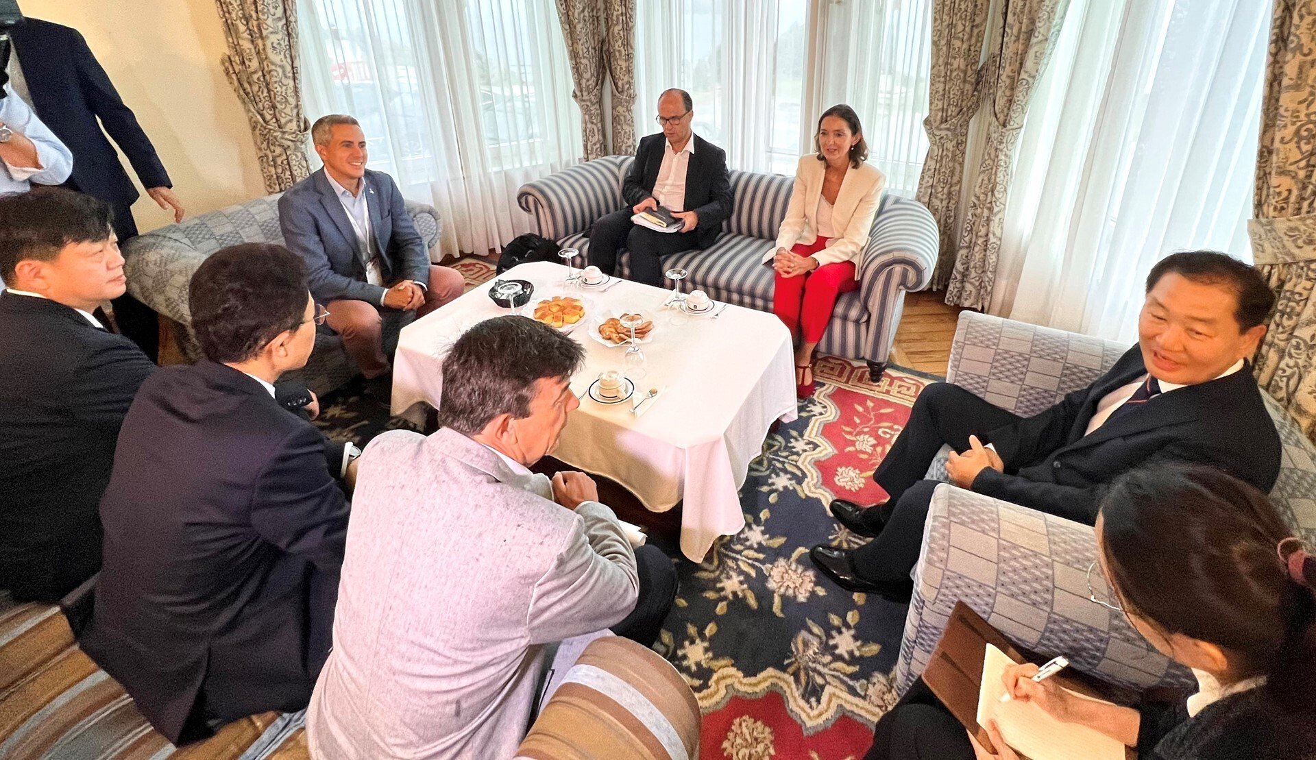 En el marco de este 36 encuentro, Pablo Zuloaga y Reyes Maroto se han reunido con el CEO de Samsung Electronics, Jong-Hee Han, que ha intervenido en la primera jornada.