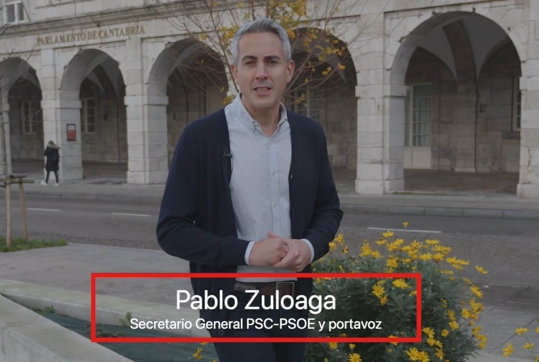 "Cantabria es, ha sido y será siempre una tierra de oportunidades", ha subrayado Zuloaga en el mensaje que el partido ha difundido con motivo de la Navidad y en el que se ve al secretario general del PSOE frente al Parlamento regional.