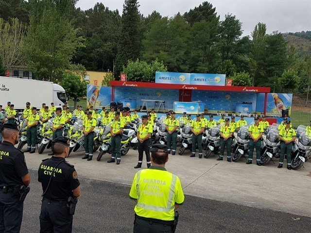 Casi 230 agentes de la Guardia Civil, 128 de la Unidad de Movilidad y Seguridad Vial (UMSV) y otro centenar de la Zona de Cantabria, formarán parte del dispositivo de seguridad con motivo del paso de dos etapas de La Vuelta por Cantabria este miércoles y jueves, 6 y 7 de septiembre. La UMSV está compuesta por un total de 128 agentes de los que 79 pertenecen a la Agrupación de Tráfico, 38 a la Agrupación de Reserva y Seguridad, 5 al Servicio Aéreo, 4 componentes del Servicio de Automovilismo y 2 de Servicio de Transmisiones, que son los encargados de establecer los diferentes dispositivos de seguridad y coordinarlos con el resto de Unidades Territoriales de la Guardia Civil y de otras Fuerzas y Cuerpos de Seguridad. Para desempeñar su cometido en este dispositivo de seguridad, del que ha informado en un comunicado la Guardia Civil, cuentan con el apoyo de 1 helicóptero, 58 motos, 2 autobuses, 10 vehículos todoterreno, 2 furgones, 1 vehículo taller y 1 vehículo para suministro de carburante, entre otros medios materiales. Entre los cometidos asignados a la UMSV se encuentran el proporcionar seguridad y movilidad vial a los corredores de La Vuelta, vehículos de organización, apoyo y caravana publicitaria, medios de comunicación, así como al resto de usuarios que puedan circular por las vías afectadas por la misma. Asimismo, se encarga de mantener y restablecer, si fuese necesario, el orden público en las zonas de influencia de las salidas y llegadas de las diferentes etapas de La Vuelta y en otras zonas afectadas por este acontecimiento deportivo. A ellos se sumarán aproximadamente un centenar de agentes de la
