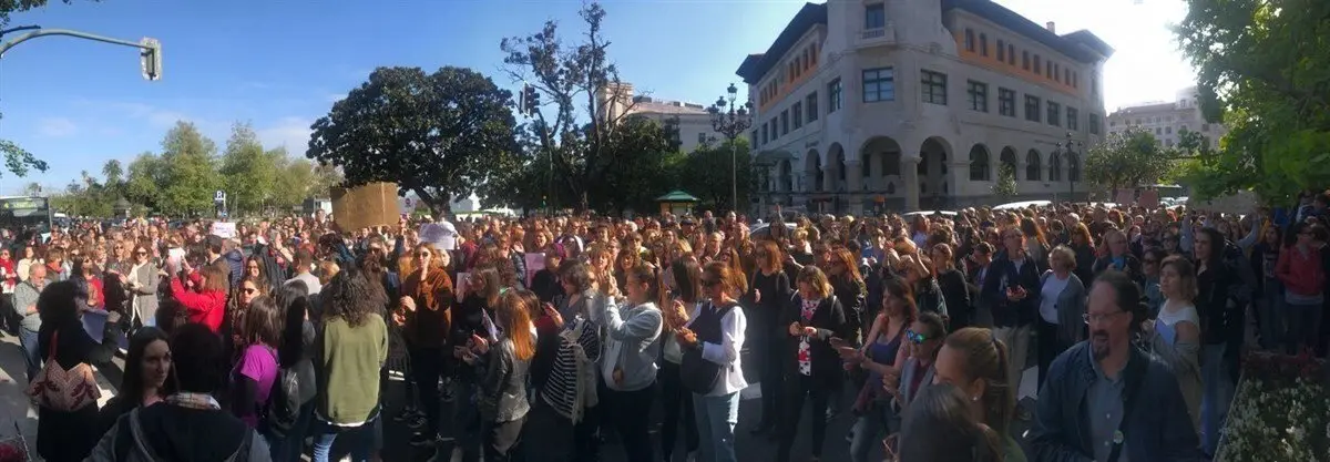 Cientos de personas se han concentrado esta tarde en Santander, ante la sede de la Delegación del Gobierno en Cantabria, convocadas por la Asamblea Feminista de Cantabria, para manifestar su protesta por la sentencia de la Audiencia de Navarra sobre el caso de 'La Manada'.