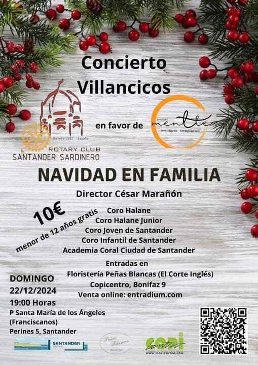 El próximo 22 de diciembre a las 19:00 horas, la iglesia de Santa María de los Ángeles (Franciscanos), ubicada en la calle Perines 5 de Santander, acogerá el concierto benéfico "Navidad en Familia". Este evento, dirigido por César Marañón y organizado por el Club Rotario Santander-Sardinero, tiene como objetivo recaudar fondos para el Proyecto Mentte, una iniciativa que apoya a adolescentes con trastornos mentales graves.