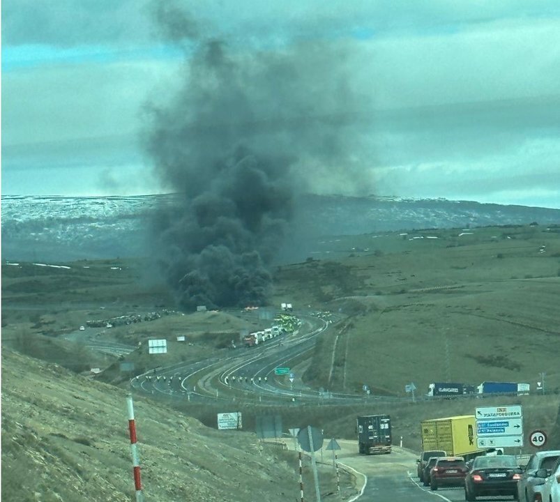 Mas de un centenar de ganaderos han mantenido la autovía cortada en ambos sentidos, así como prendieron fuego a algunos fardos de paja y neumáticos en señal de protesta.