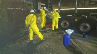 Un importante despliegue de servicios de emergencias se encuentra en estos momentos acordonando los accesos al área de servicio de Ambrosero, en la autovía A8, por un vertido de ácido clorhídrico.