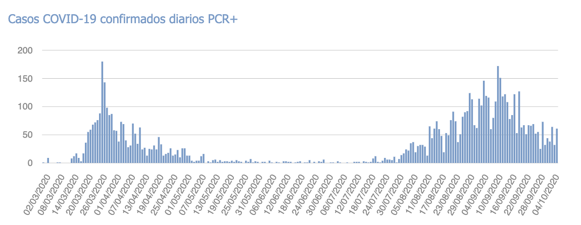 Os dejamos la tabla con los últimos datos facilitados por Sanidad, sumados los de ayer día 4 de octubre de 2020 hasta las 23:59h.