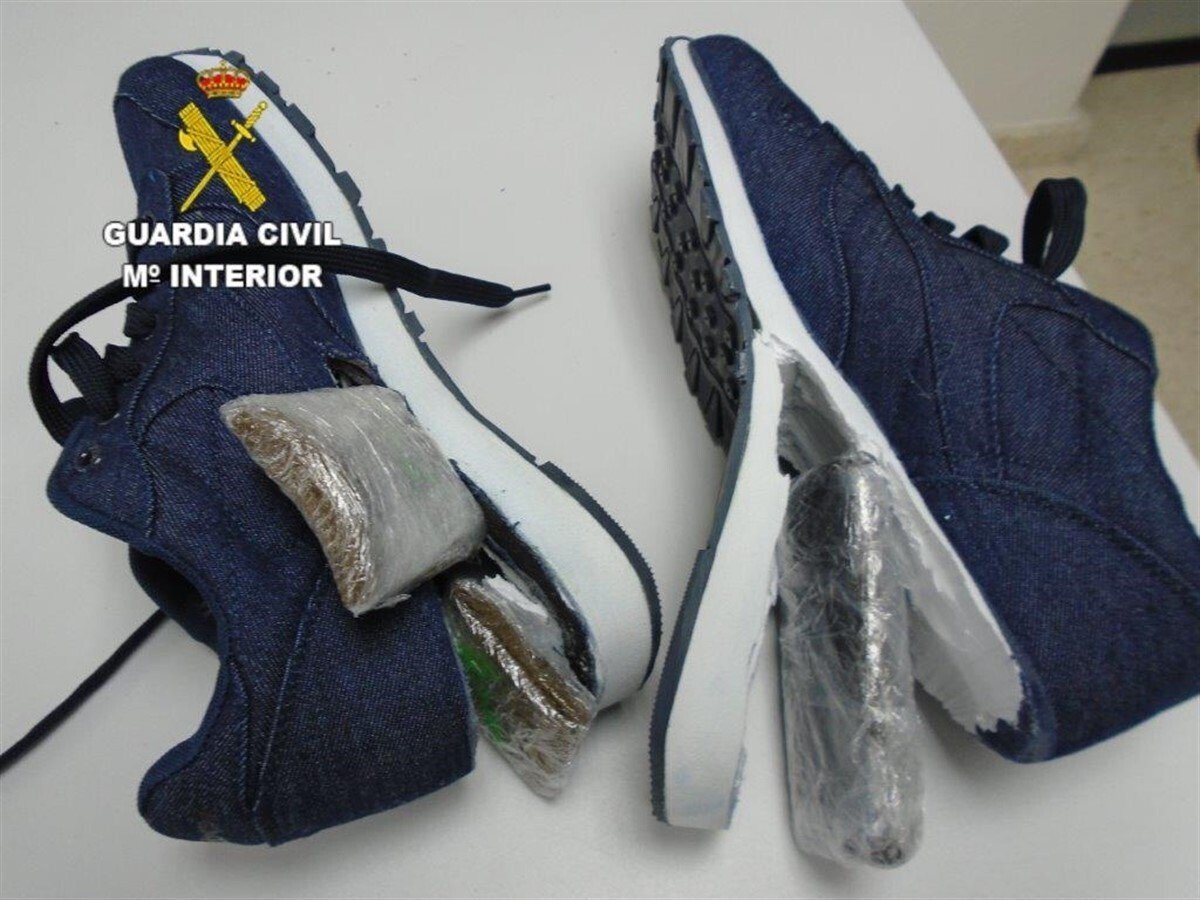 La operación fue explotada con motivo del envío de un paquete desde Ceuta que contenía seis zapatillas de deporte en las que se ocultaban once bellotas de hachís y un teléfono móvil.