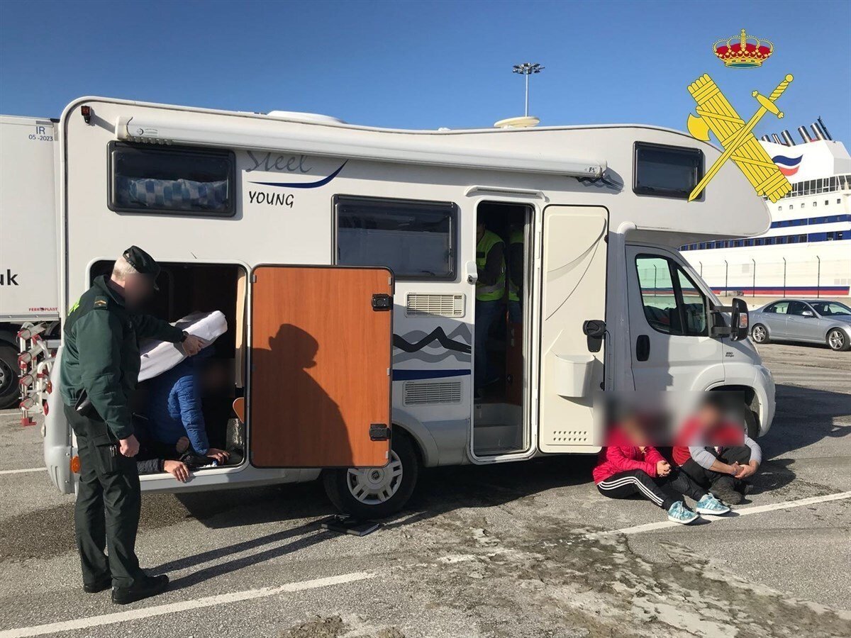 La Guardia Civil detuvo el pasado 18 de enero en el Puerto de Bilbao a dos personas de nacionalidad española, residentes en Cantabria, cuando pretendían introducir ilegalmente en el ferry que viaja a Reino Unido a cuatro jóvenes albaneses, ocultos en el interior de una autocaravana.