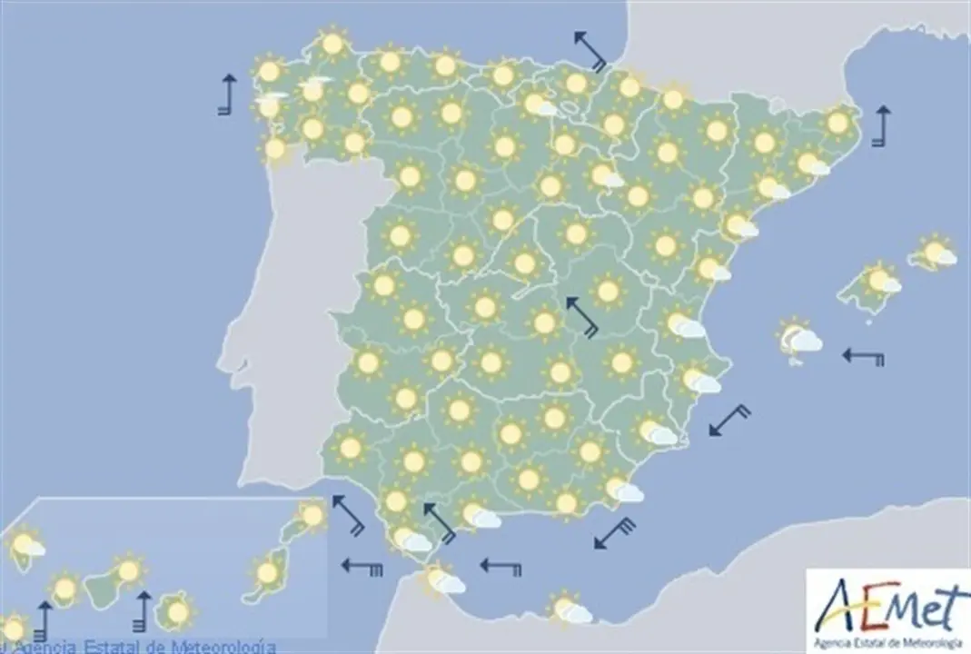 El cuadrante noroeste peninsular, el valle del Guadiana y Canarias tendrán este jueves, 14 de febrero, temperaturas por encima de las habituales en esta época, según la Agencia Estatal de Meteorología (AEMET).