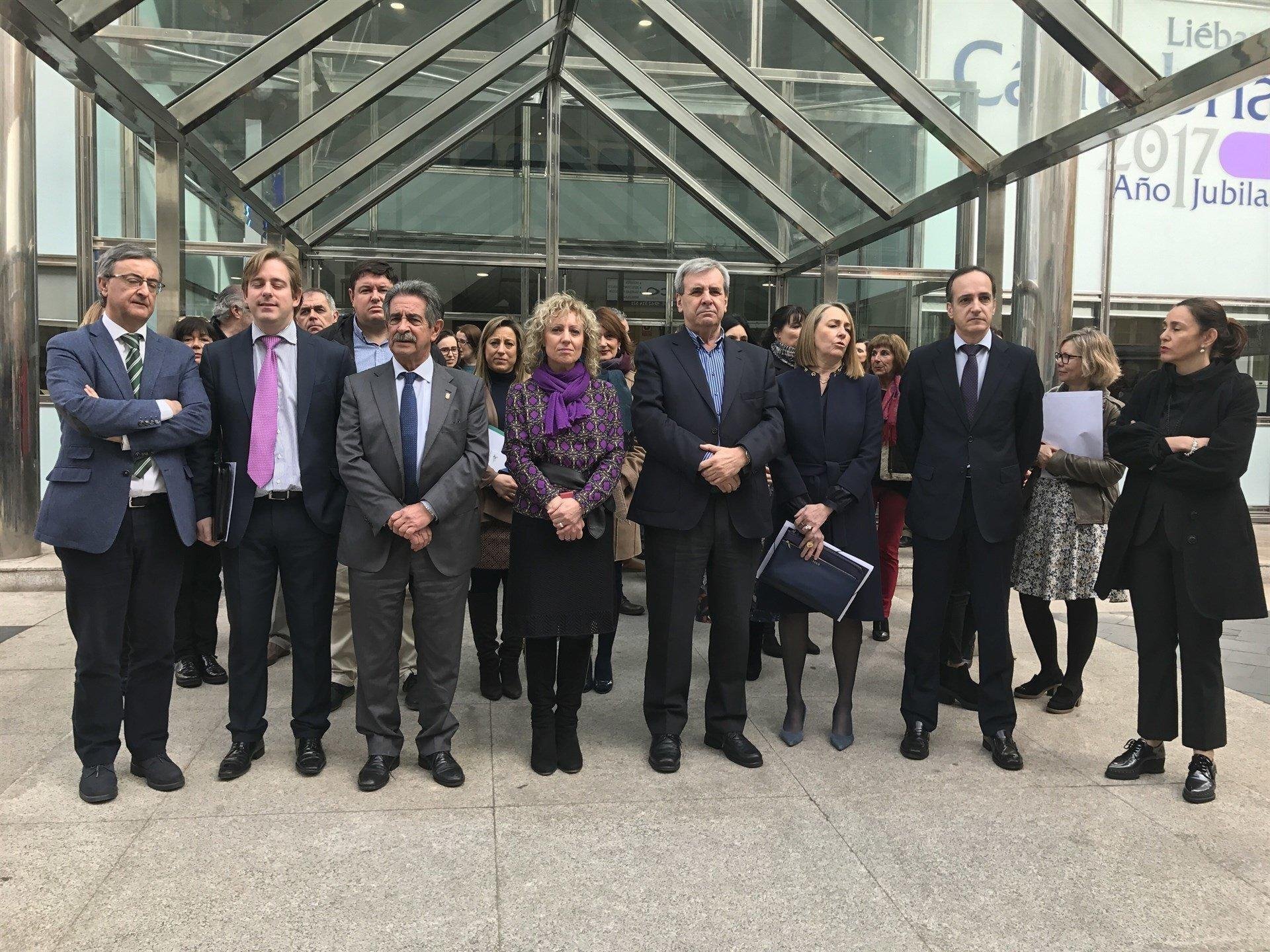 En el caso del Parlamento, diputados y miembros del personal del Parlamento de Cantabria también se han sumado a la iniciativa internacional 'Nosotras paramos' con una concentración en los soportales del antiguo hospital de San Rafael, sede la Cámara.
