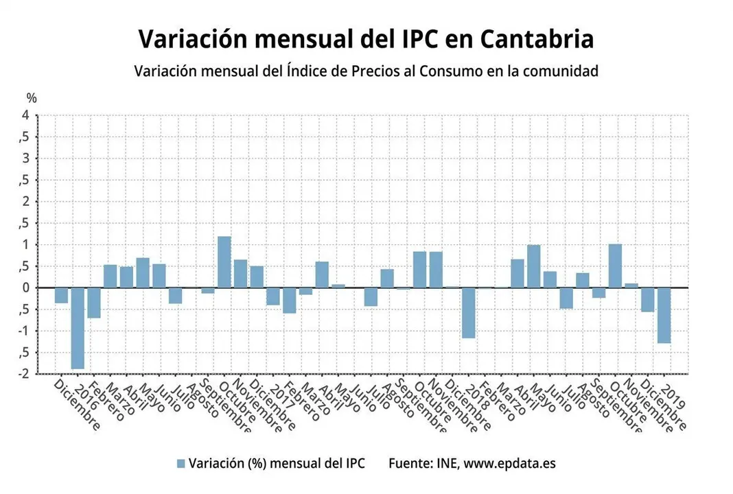 El Índice de Precios de Consumo (IPC) en Cantabria subió un 0,9% en enero en comparación con el mismo mes del año anterior, una décima menos que la media nacional (1%) pero retrocedió un -2,3% respecto al mes anterior, diciembre de 2018, según ha informado este viernes el Instituto Nacional de Estadística (INE).