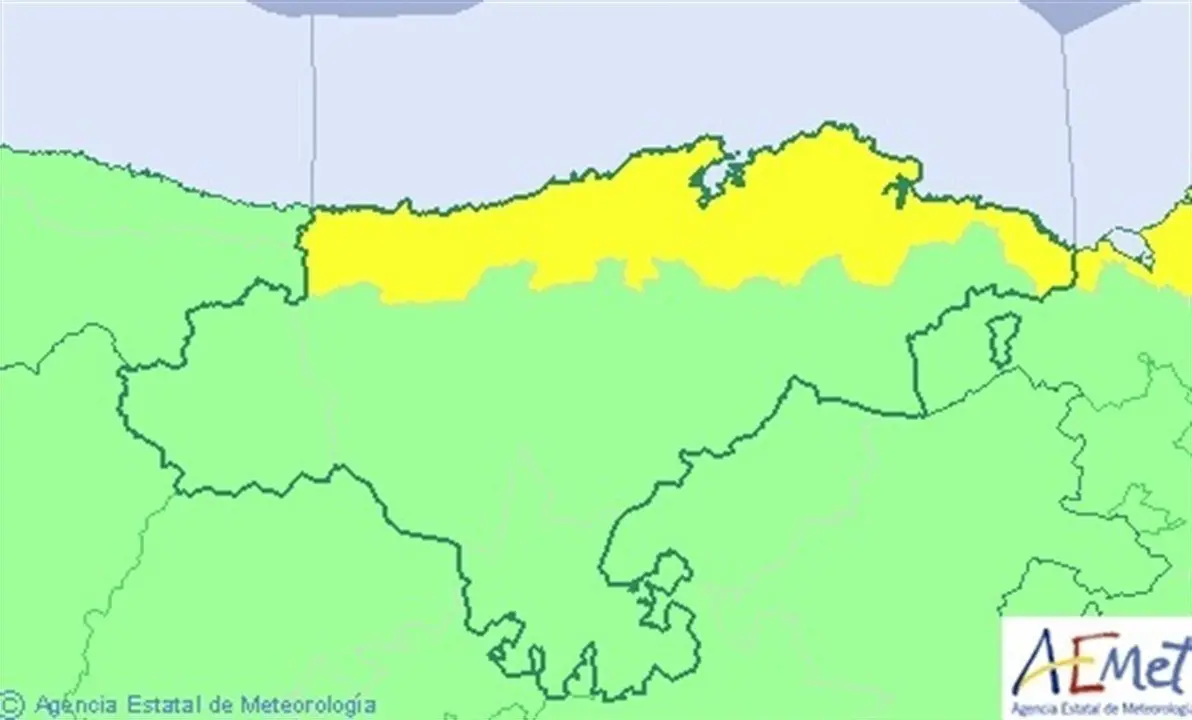 Así, el riesgo se restringe a provincias del norte del país, de modo que Cantabria, Vizcaya y Guipúzcoa tendrán aviso amarillo por lluvias, ya que se prevé acumular hasta 20 litros por metro cuadrado en una hora.