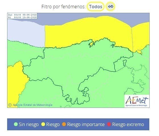 La costa de Cantabria estará este lunes, 9 de abril, en riesgo de nivel amarillo por fenómenos costeros adversos, según la Agencia Estatal de Meteorología (AEMET).