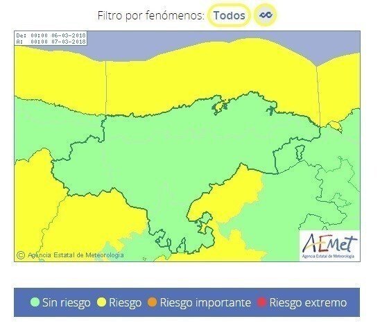 Además de Cantabria, estarán en aviso amarillo por oleaje La Coruña, Lugo, Asturias, Vizcaya, Guipúzcoa, Granada, Melilla, Ibiza, Formentera y Mallorca y de nivel naraja (riesgo importante) Almería, donde se espera viento del oeste fuerte con fuerza 8.