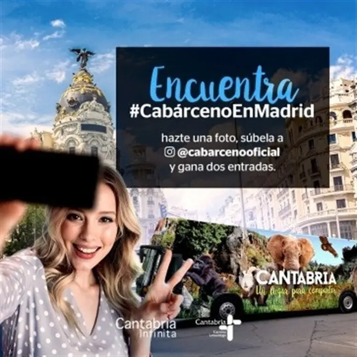 La promoción se centra en tres puntos principales: un autobús vinilado con imágenes del Parque de Cabárceno que recorrerá la ciudad del 27 de mayo al 10 de junio; el panel superior de la estación de Avenida América tendrá, del 21 al 30 de junio, la misma imagen de Cabárceno; y las pantallas instaladas en la plaza de Callao proyectarán imágenes del parque desde el 29 de mayo hasta el 13 de junio.