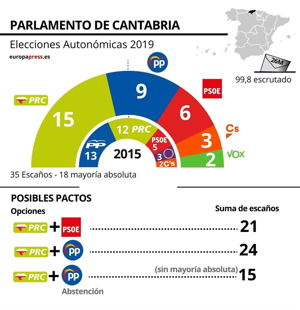 Los seis diputados socialistas que le han reportado los 56.600 votos que ha sumado en las autonómicas, permitirían reeditar el pacto con el PRC y sumar la mayoría absoluta que no han tenido en esta legislatura (estaban a falta de uno), aunque Revilla ya ha puesto sobre la mesa sus condiciones.