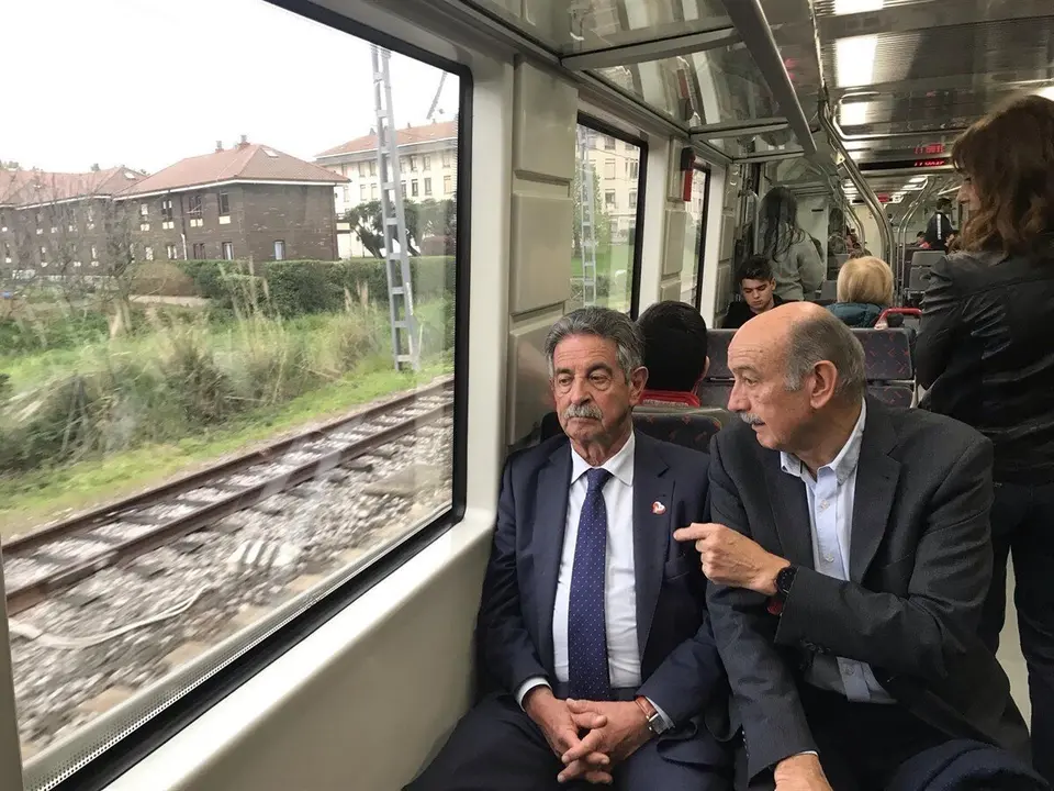 El secretario general del PRC y candidato a la reelección en la Presidencia de Cantabria, Miguel Ángel Revilla, y los candidatos regionalistas al Congreso y el Senado, José María Mazón y Rosa Valdés, se han subido hoy al tren de ceranías para comprobar el estado de la red y anunciar que exigirán en Madrid los casi 530 millones de inversión para su mejora prometidos por el anterior ministro de Fomento Iñigo de la Serna.