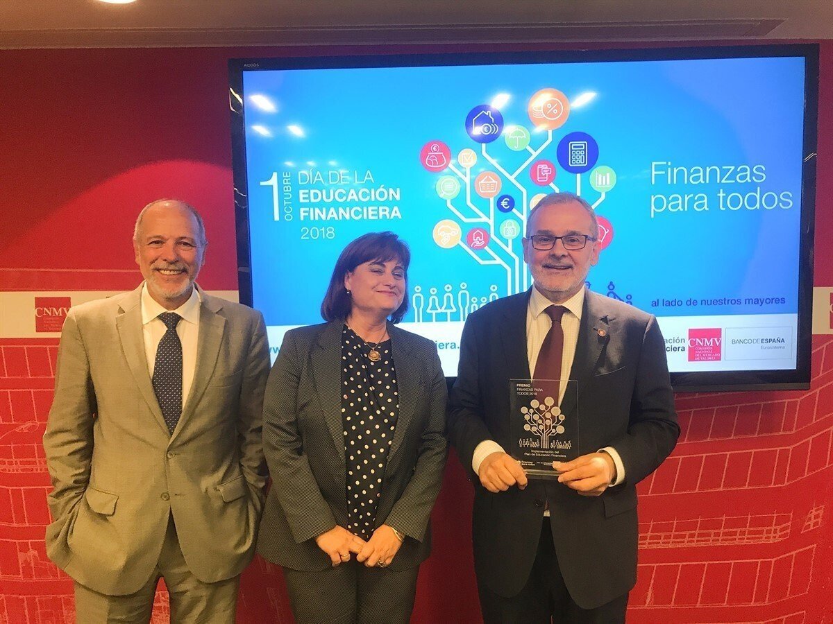 El rector de la Universidad de Cantabria (UC), Ángel Pazos, ha recogido hoy el reconocimiento al proyecto Finanzas para Mortales como mejor iniciativa de educación financiera 2018, en la categoría de implementación del Plan de Educación Financiera, del Premio Finanzas para Todos, promovido por el Banco de España y la Comisión Nacional del Mercado de Valores (CNMV).