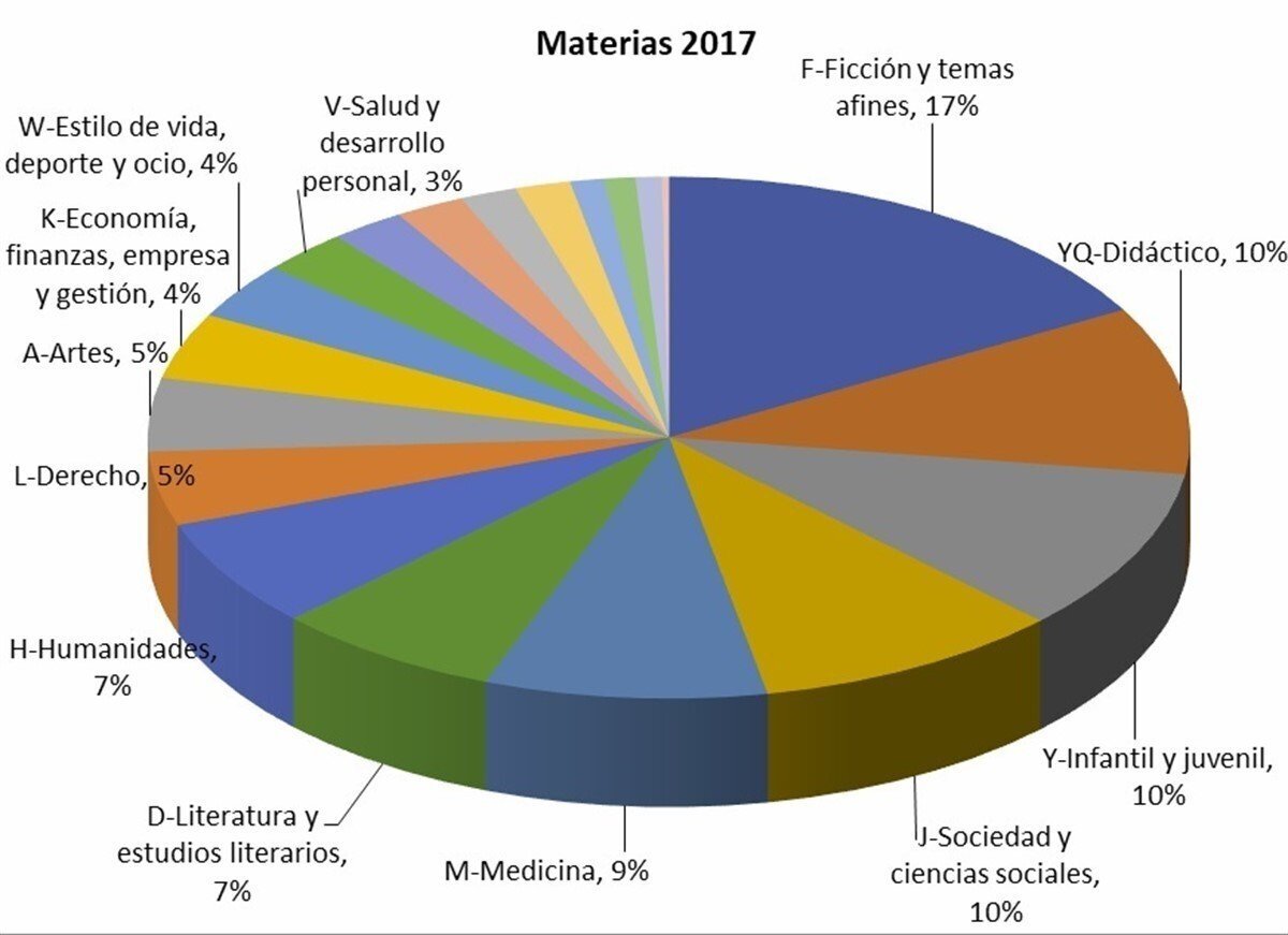 Si se hace un análisis de las temáticas de todos estos títulos, los libros de Ficción y temas afines constituyen el género con mayor número de registros en 2018, el 16,9%. (12.845 libros).