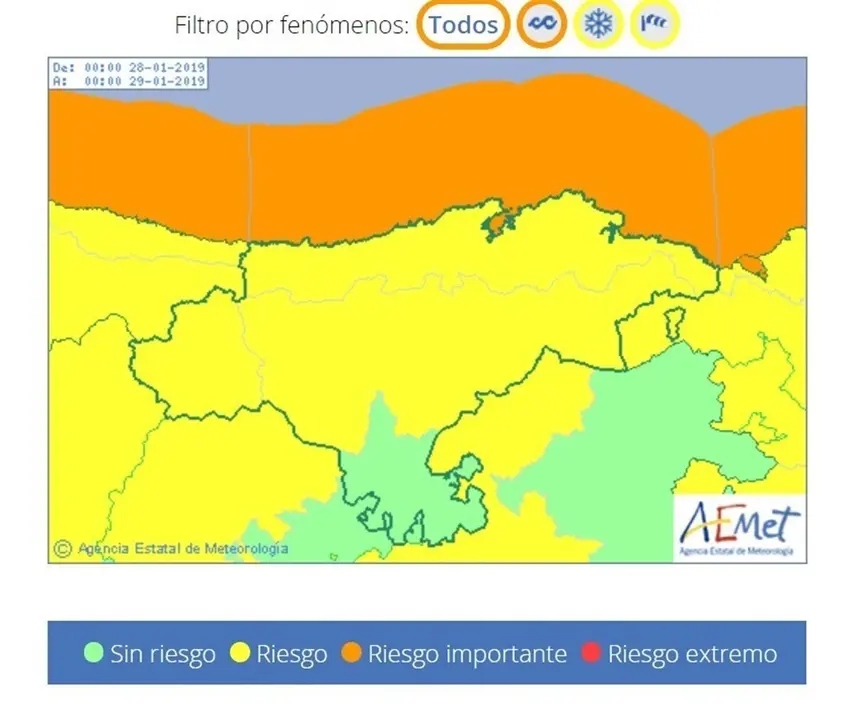 Rachas del noroeste de hasta 90 kilómetros por hora han provocado la activación por parte de la Agencia Estatal de Meteorología (AEMET) del aviso naranja (riesgo importante) por viento en la zona costera, y el aviso amarillo (riesgo) en las citadas comarcas del interior.