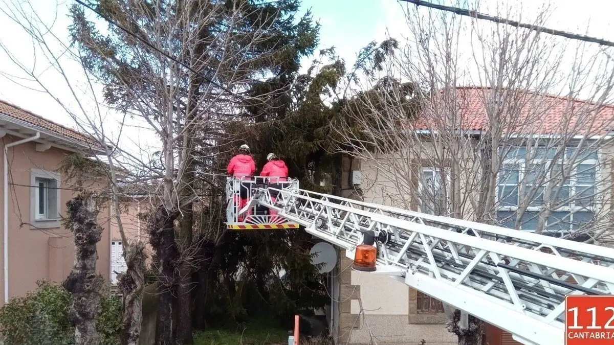 El viento ha provocado el desplome de un árbol sobre una casa en Matamorosa y la caída de una torre de tendido eléctrico en Meruelo, entre otras incidencias. En total, el Centro de Gestión de Emergencias 112 del Gobierno de Cantabria ha coordinado, entre las 8 y las 18 horas de este domingo 40 intervenciones derivadas de las 131 llamadas recibidas en relación al fuerte viento que azota la región.