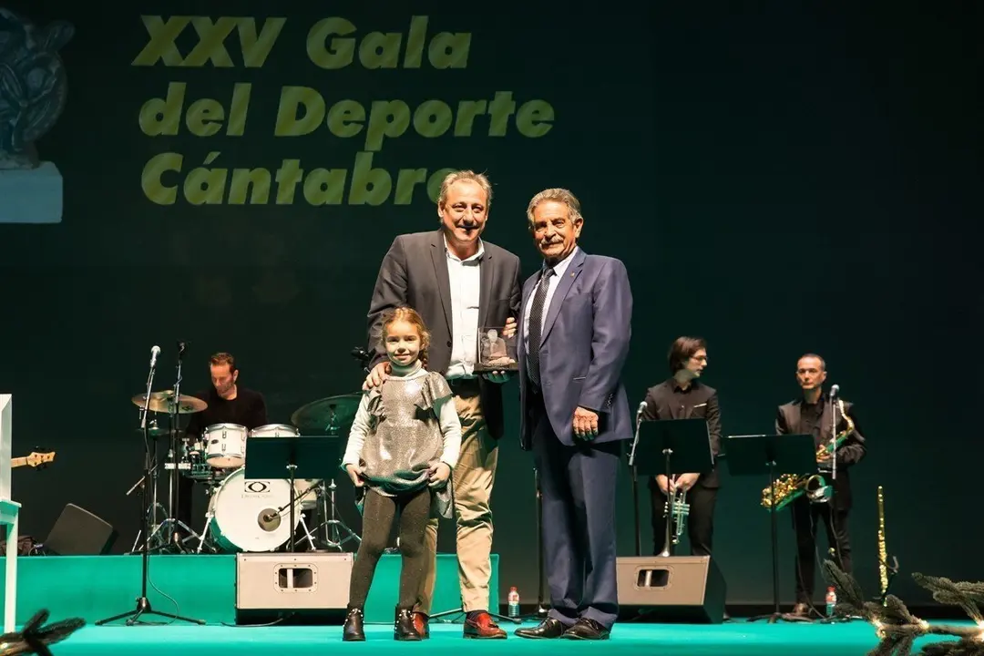 El presidente de Cantabria, Miguel Ángel Revilla, ha entregado el premio a Cacho ene el marco de la XXV edición de la Gala del Deporte Cántabro que se ha celebrado el jueves por la tarde en el Palacio de Festivales de Santander.