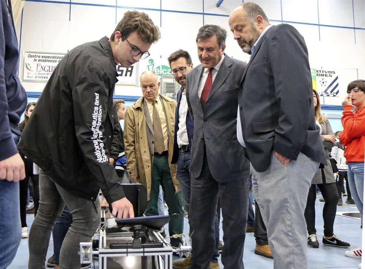 En su recorrido por la exposición, el consejero de Educación y el resto de autoridades han podido comprobar el alto nivel de los participantes y de sus proyectos robóticos.