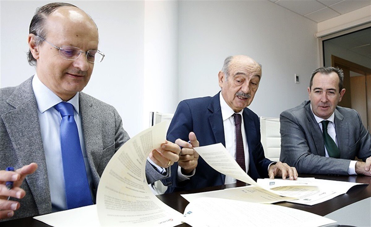 Los encargados de rubrican el acuerdo han sido el consejero de Obras Públicas y Vivienda, José María Mazón, en calidad de presidente de la socieda pública Gesvican, y el catedrático de Derecho Financiero y exvicerrector de Relaciones Institucionales y Coordinación de Cantabria Campus Internacional de la UC, Juan Enrique Varona.