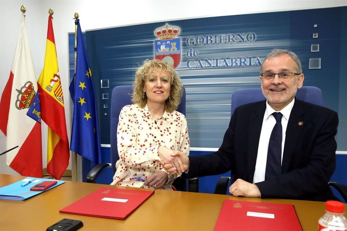 La vicepresidenta del Gobierno regional, Eva Díaz Tezanos, y el rector de la Universidad de Cantabria, Ángel Pazos, han firmado este lunes el convenio de colaboración para la puesta en marcha de la Cátedra MARE de Economía Circular, que estará adscrita al departamento de Ciencias y Técnicas del Agua y del Medio Ambiente de la universidad cántabra, y contará con una dotación anual de 30.000 euros durante los próximos cuatro años.