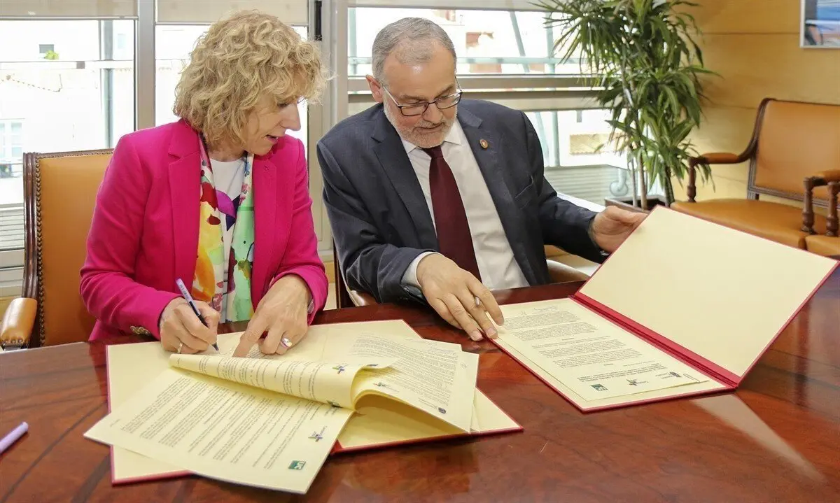 La vicepresidenta y consejera de Universidades en funciones, Eva Díaz Tezanos, y el rector de la Universidad de Cantabria (UC), Ángel Pazos, han firmado el convenio de colaboración para la puesta en marcha la Cátedra de Igualdad y Estudios de Género con el fin de avanzar en la formación, investigación y difusión de aspectos relacionados con la igualdad entre mujeres y hombres y la perspectiva de género.