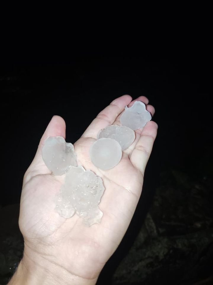 En la imagen que ilustra esta noticia, podemos ver los granizos caídos sobre la localidad de Llerana, del tamaño de pelotas de golf, que han provocado daños en tejados y vehículos no solo allí, también en otros puntos del mapa cántabro.