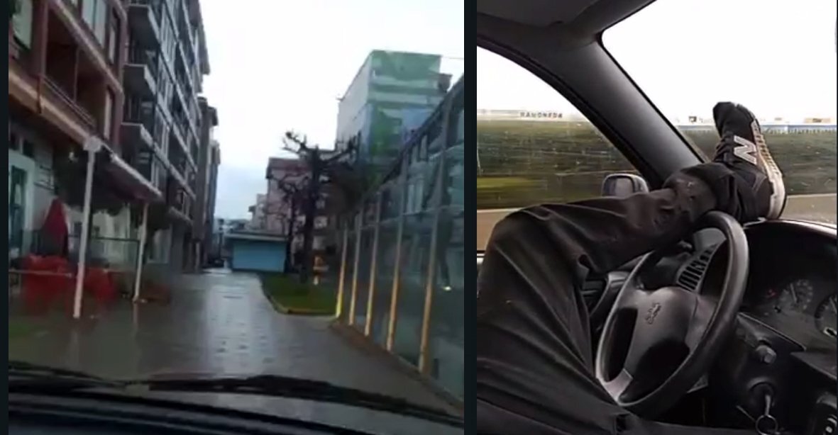 En los videos se ve como el conductor circula por la autovía S10 a su paso por los centros comerciales manejando el volante con el pie, después circulando en sentido contrario, dando giros por la carretera y subiendo unas escaleras por una zona peatonal.