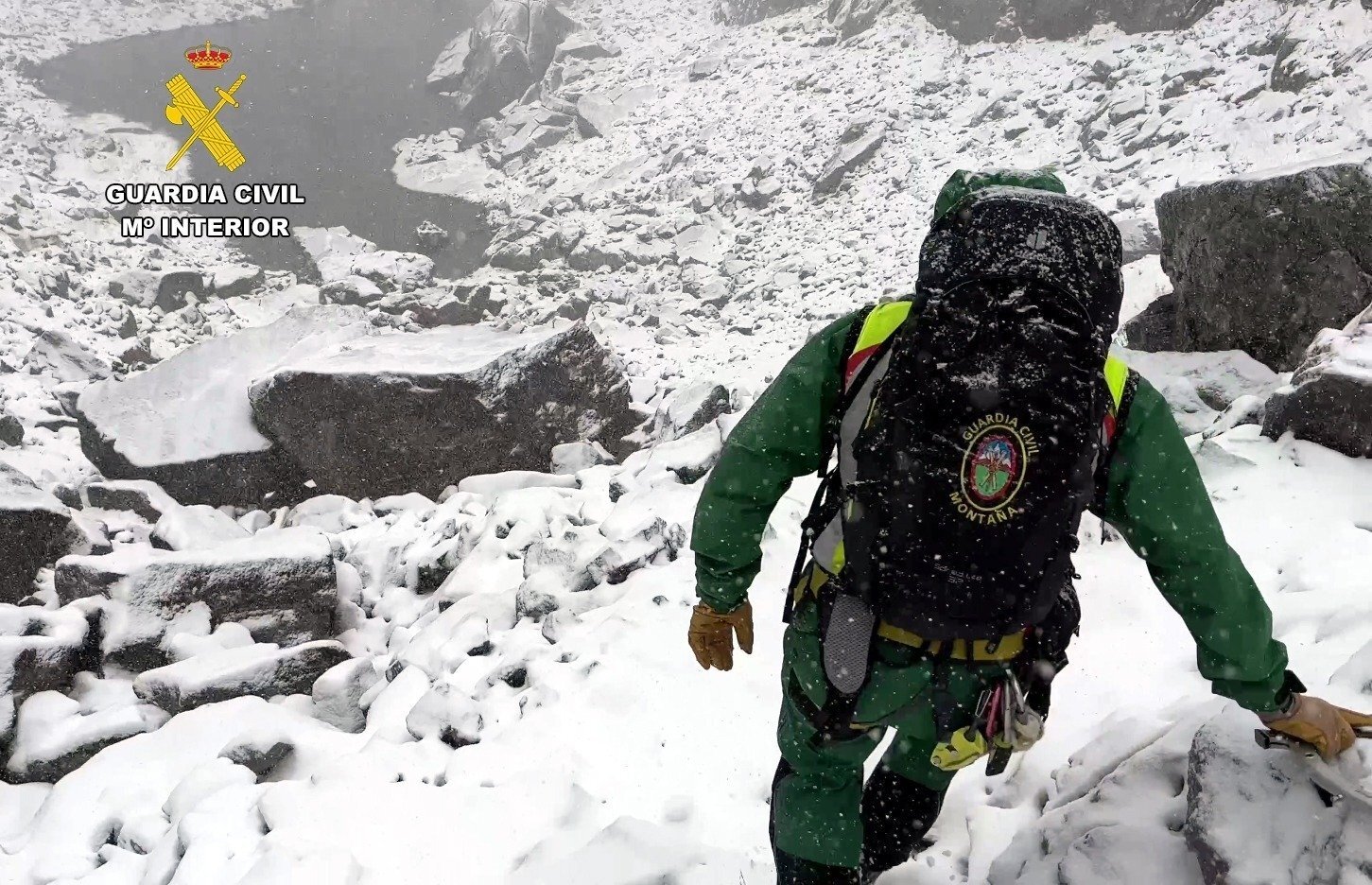 Desde ese lugar y a pie, los especialistas en montaña de la Guardia Civil se dirigieron a la citada canal, bajo fuertes rachas de viento y nieve.