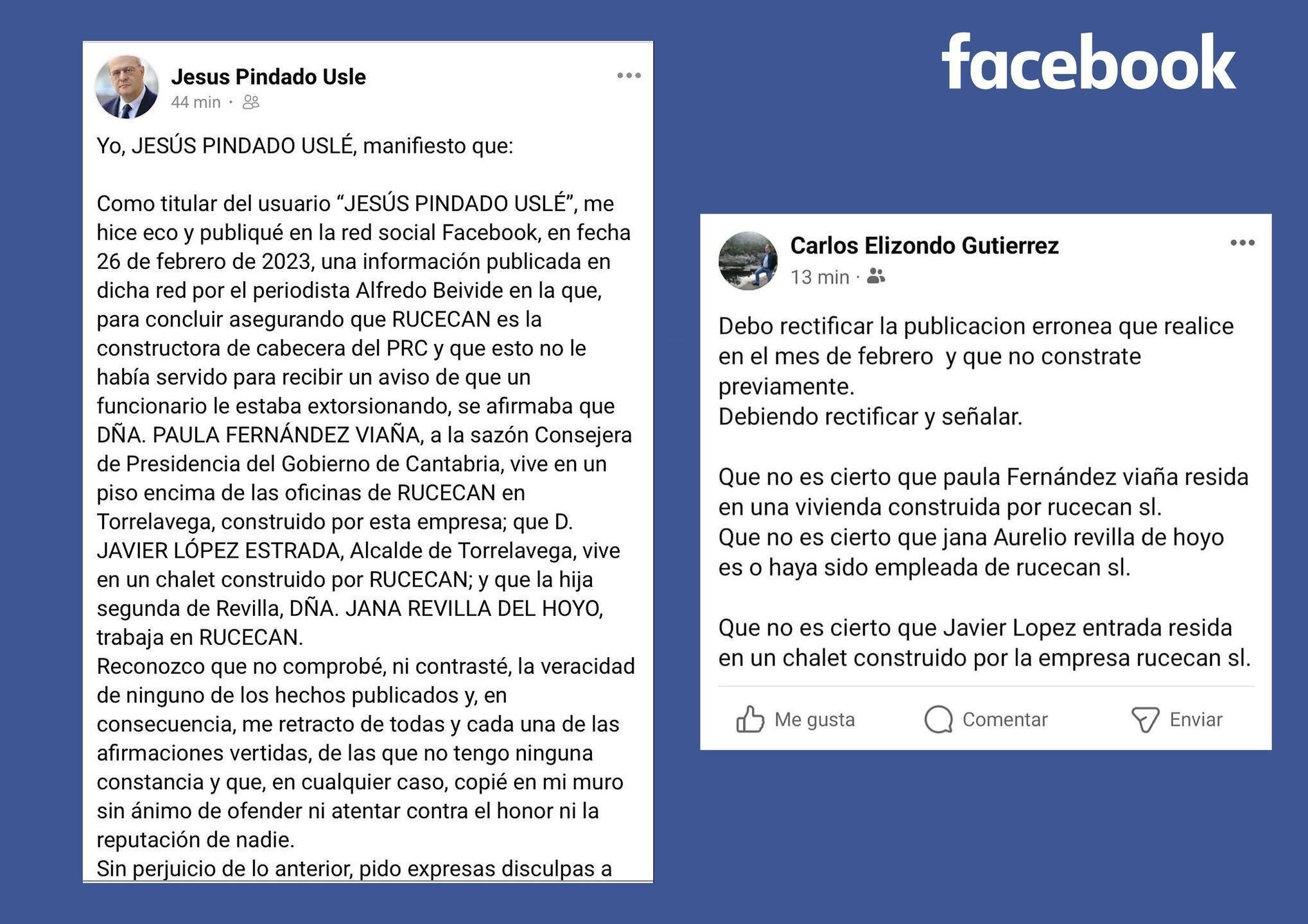 El concejal del PP en Soba Carlos Elizondo y el periodista Jesús Pindado se han retractado de los infundios que difundieron en sus redes sociales el pasado mes de febrero para vincular a altos cargos y militantes del PRC con la trama de mordidas urdida por un funcionario en la Consejería de Obras Públicas.