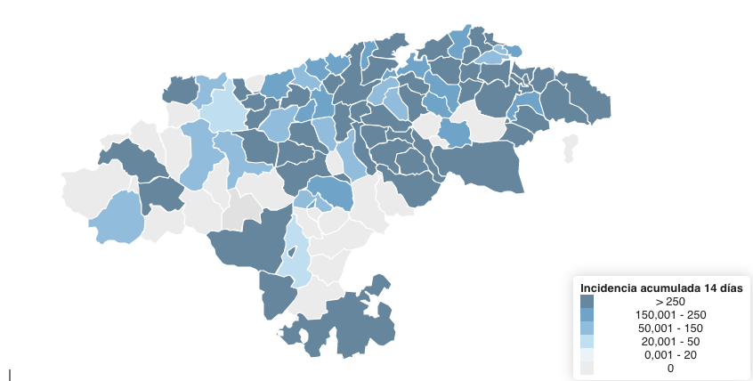 Cantabria se sitúa con una incidencia media de 331 casos por cada 100.000 habitantes, os dejamos el listado completo de municipios afectados y su incidencia acumulada en los últimos 14 días.
